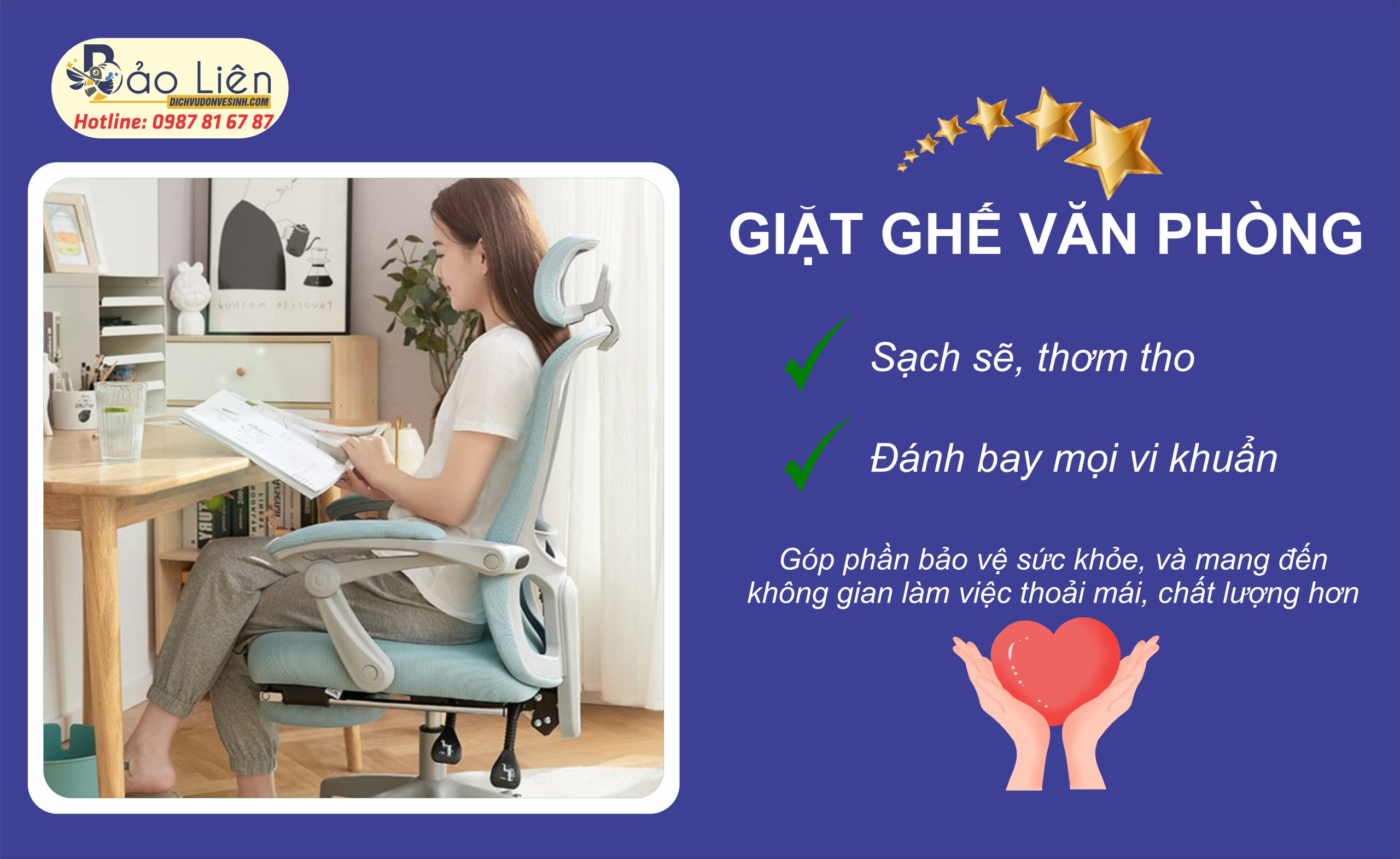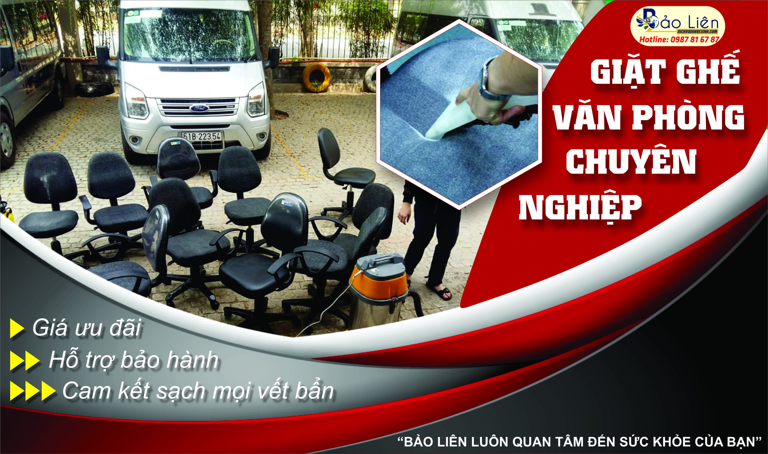 - Để được tư vấn rõ hơn về dịch vụ cũng như book lịch giặt ghế văn phòng, khách hàng vui lòng liên hệ qua số HOTLINE: 0987 81 67 87 để được hỗ trợ nhanh nhất.