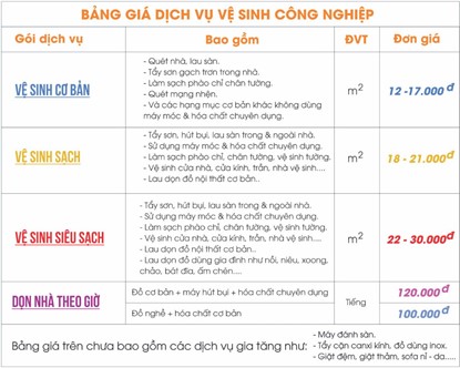 3. Bảng giá dịch vụ vệ sinh nhà sau xây dựng tại Hà Nội